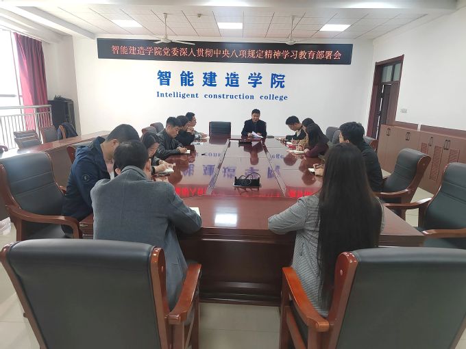 会议学习了习近平总书记关于深入贯彻中央八项规定精神的重要讲话和重要指示精神、中共中央办公厅《关于在全党开展深入贯彻中央八项规定精神学习教育的通知》,传达了学校党的建设工作领导小组会议暨深入贯彻中央八项规定精神学习教育动员部署会议精神、学校《关于在全校开展深入贯彻中央八项规定精神学习教育的实施方案》,对学院深入贯彻中央八项规定精神学习教育作出了具体部署。