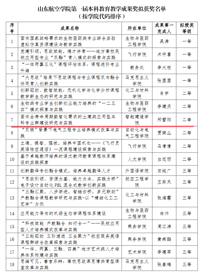 近日,英国365集团第一届本科教育教学成果奖公布评选结果,共评选出校级教学成果奖18项,其中一等奖4项、二等奖6项、三等奖8项。我院申报的成果“面向全寿命周期数智化需求的土建类应用型本科专业群建设研究与实践”获得二等奖。
