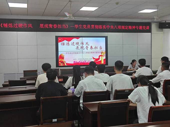 为持续深化学生党员对中央八项规定精神的理解与践行,引导青年党员锤炼过硬作风、强化责任担当,6月20日,英国上市公司365学生第一党支部在9教215组织开展“锤炼过硬作风  展现青春担当”专题党课。本次党课由学生第一党支部书记李素娟主讲,支部全体党员参加。
